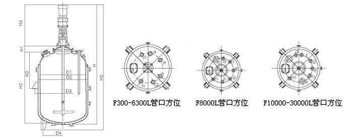 搪玻璃反應罐外型尺寸及其參數表: